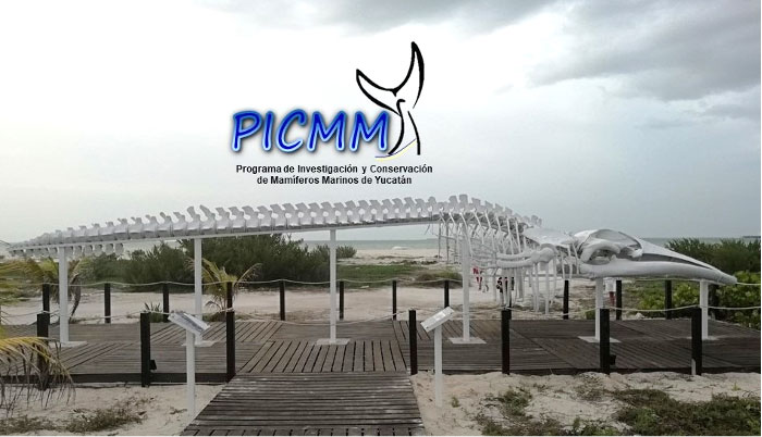 Figura 2. Exhibición del esqueleto de la ballena de aleta (Balaenoptera physalus) en Progreso, Yucatán. Fuente: Programa de Investigación y Conservación de Mamíferos Marinos de Yucatán.