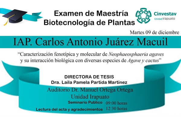 Les invitamos al examen final del IAP. Carlos Antonio Juárez Macuil para obtener el grado de Maestría en Biotecnología de Plantas