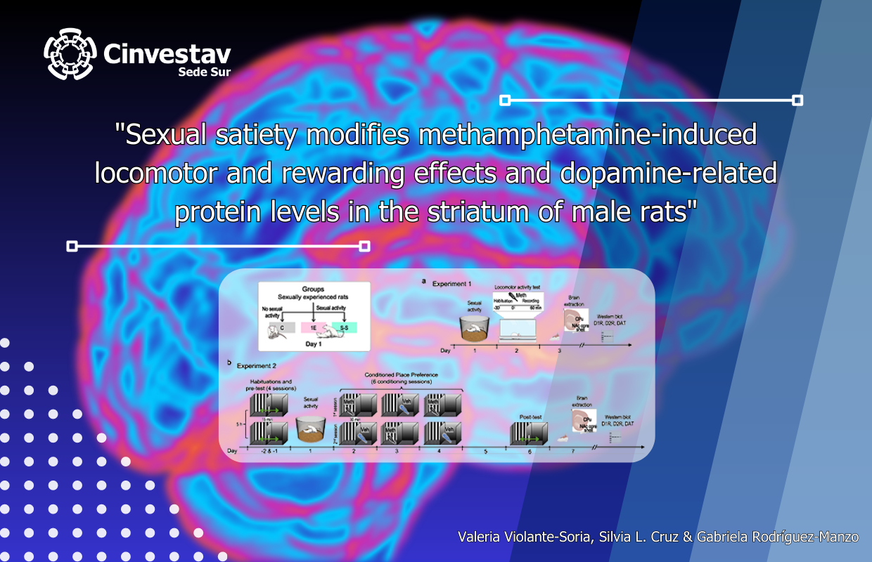 Invitamos a leer el artículo: “Sexual satiety modifies methamphetamine-induced locomotor and rewarding effects and dopamine-related protein levels in the striatum of male rats”, en la que colaboró la Doctora Gabriela Rodríguez Manzo, Investigadora de Cinvestav Sede Sur