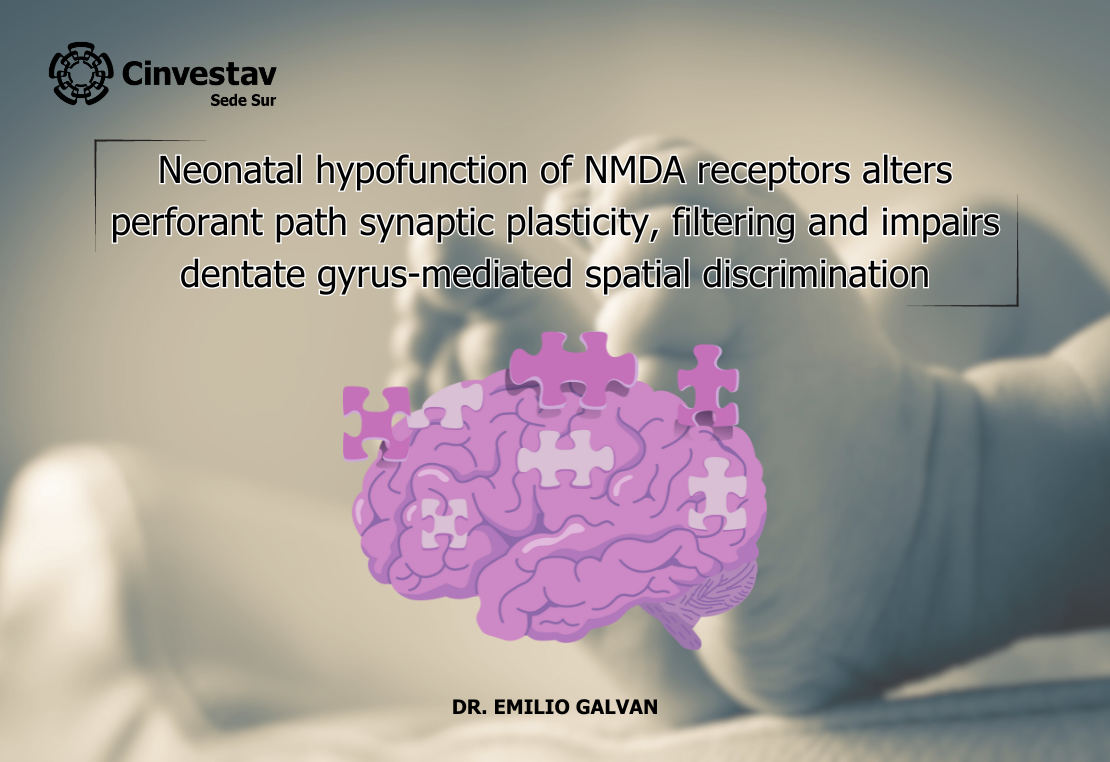 Invitamos a leer el artículo: “Neonatal hypofunction of NMDA receptors alters perforant path synaptic plasticity, filtering and impairs dentate gyrus-mediated spatial discrimination”, en la que colaboró el Doctor Emilio J. Galvan, Investigador de Cinvestav Sede Sur
