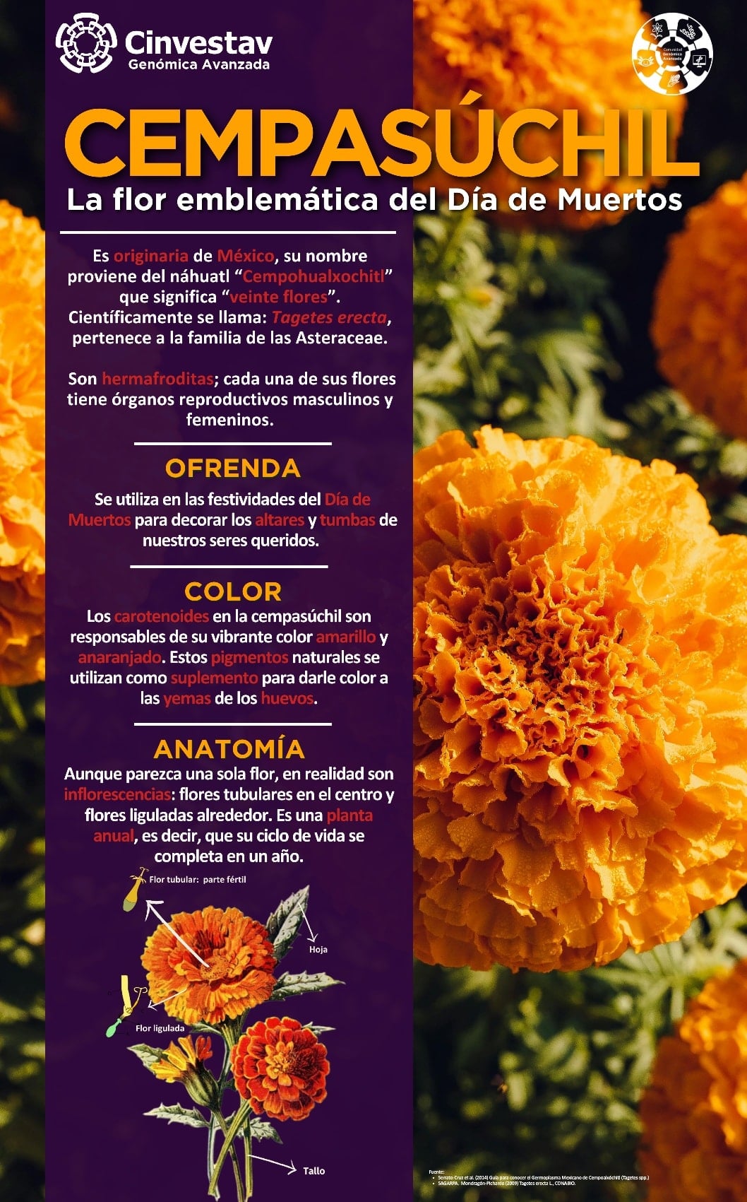 El Cempasúchil es emblema del Día de Muertos en México, tiene una historia fascinante. Originaria de nuestro país, su nombre viene del náhuatl "Cempohualxochitl" que significa "veinte flores".