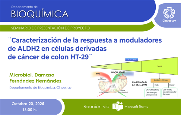 Microbiol. Damaso Fernández Hernández SEMINARIO DE PRESENTACIÓN DE PROYECTO Fecha del evento: 20/10/2025 04:00 p. m. - 06:30 p. m. Exportar evento Print