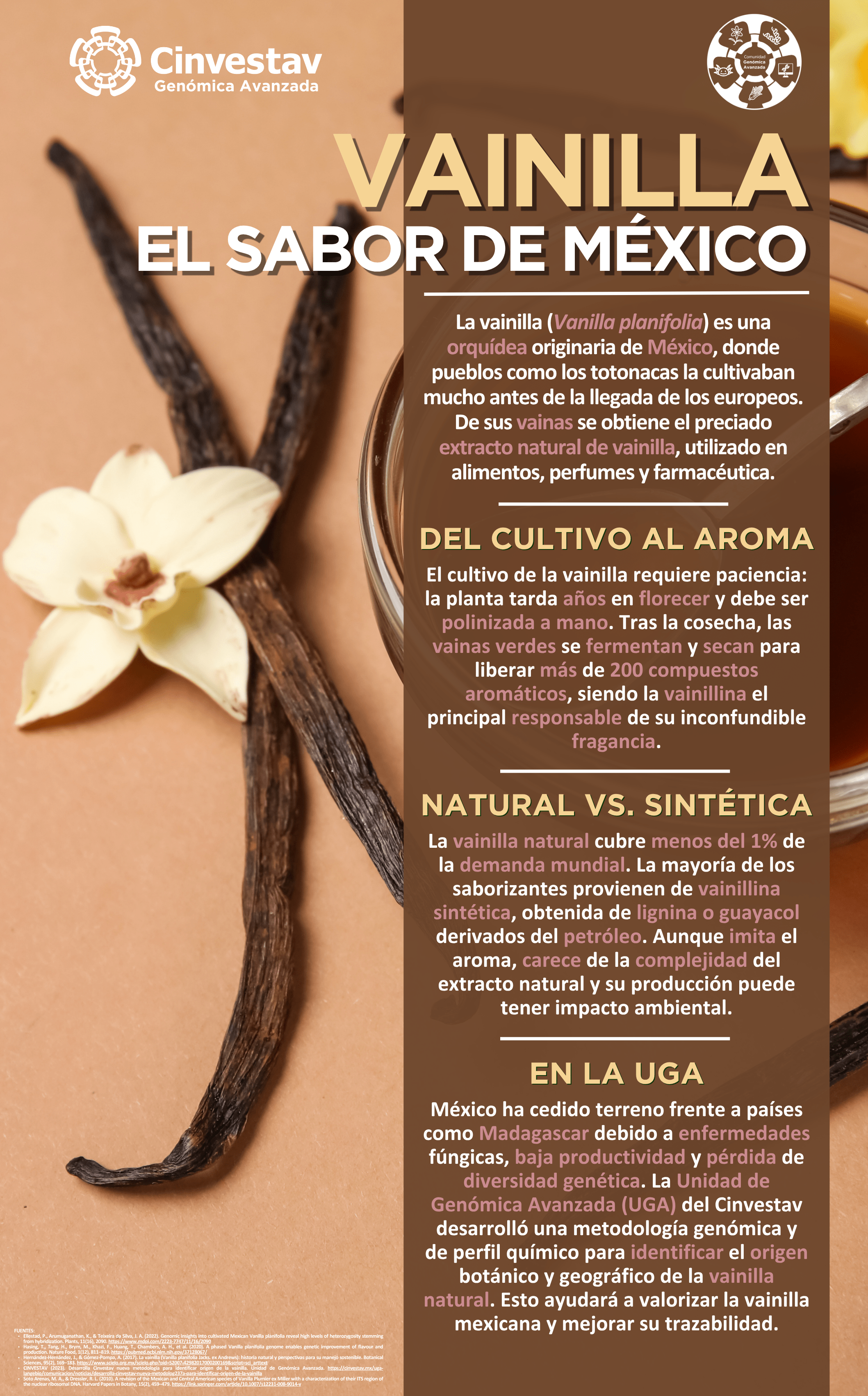 La Unidad de Genómica Avanzada (UGA) del Cinvestav desarrolló una metodología genómica y de perfil químico para identificar el origen botánico y geográfico de la vainilla natural. Esto ayudará a valorizar la vainilla mexicana y mejorar su trazabilidad.