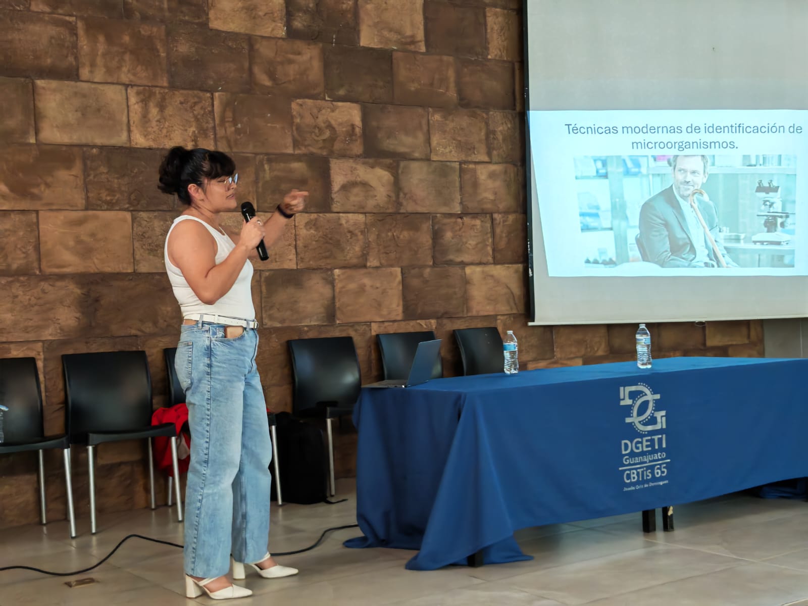 En una destacada jornada de vinculación, miembros del Cinvestav Irapuato visitaron el Centro de Bachillerato Tecnológico Industrial y de Servicios (CBTis) No. 65 los días 15 y 17 de octubre de 2025 para impartir la conferencia “Técnicas de identificación de microorganismos”, en el marco del programa de fortalecimiento académico y vinculación institucional. La actividad estuvo dirigida a estudiantes de tercer semestre de la especialidad de Laboratorista Clínico, con el propósito de acercarlos al quehacer científico y mostrar la aplicación práctica de diversas metodologías utilizadas en los laboratorios de investigación.