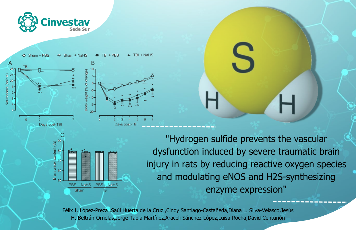 Invitamos a leer el artículo: “Hydrogen sulfide prevents the vascular dysfunction induced by severe traumatic brain injury in rats by reducing reactive oxygen species and modulating eNOS and H2S-synthesizing enzyme expression”, en la que colaboraron el Doctora Araceli Sánchez López, la Doctora Luisa Rocha y el Doctor David Centurión, Investigadores de Cinvestav Sede Sur