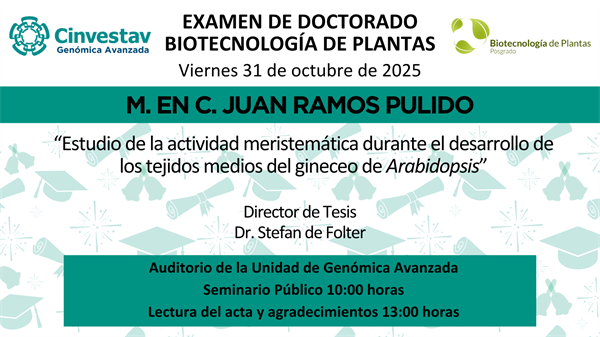 Les invitamos al examen final del M.C. Pablo López Gómez, del Posgrado de Biotecnología de Plantas, para obtener el grado de Doctor.