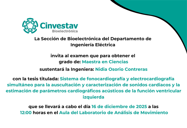 La Sección de Bioelectrónica invita al examen de grado que para obtener el grado de Maestra en Ciencias presenta la