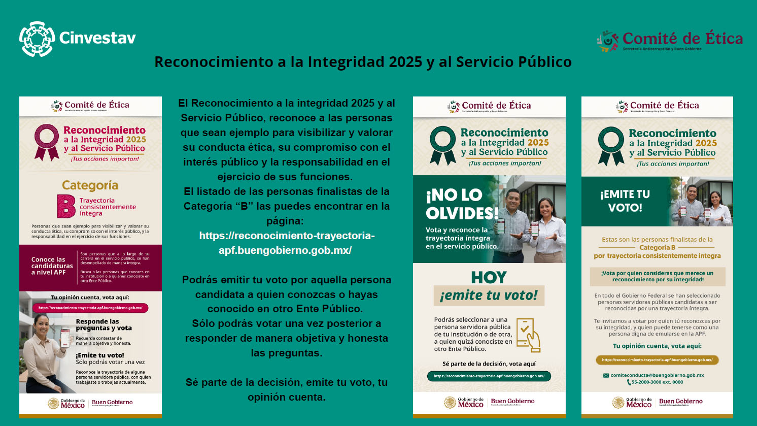 Erik Noel Martínez Domínguez / miércoles, 12 de noviembre de 2025 / Categorías: Difusión Convocatoria a votación al Reconocimiento a la integridad 2025 y al Servicio Público Artículo anterior Materiales de Difusión Noviembre 2025 Siguiente artículo Seminarios Botaneros en temas de Inteligencia Artificial Print 57 Califica este artículo: Sin calificación Please login or register to post comments.