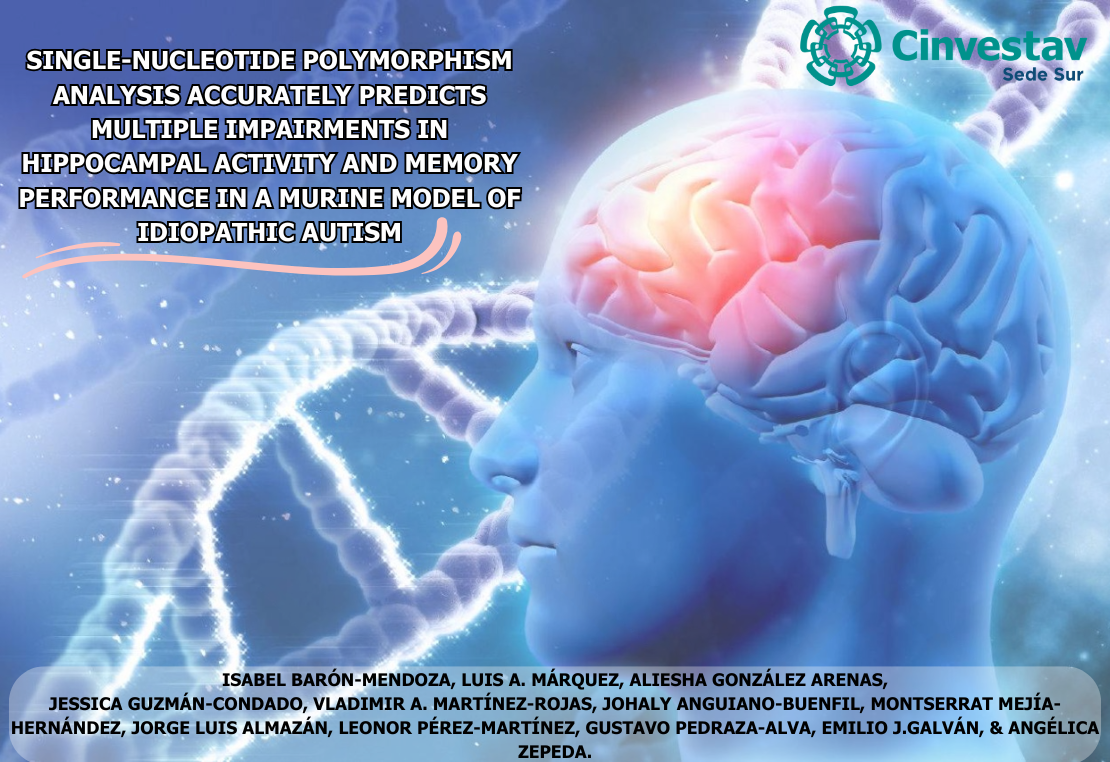 Te invitamos a leer el artículo: "Single-nucleotide polymorphism analysis accurately predicts multiple impairments in hippocampal activity and memory performance in a murine model of idiopathic autism", realizado por el Dr. Emilio J. Galván, investigador de la Sede Sur del Cinvestav.